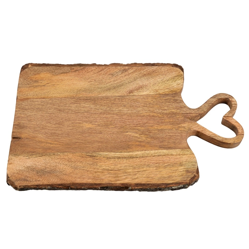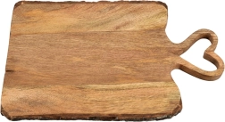 Stílusos mangófából készült deszka szív alakú fogantyúval, ideális vágáshoz és tálaláshoz sajtokhoz, felvágottakhoz és snackekhez. Méret: 45 × 25 × 2 cm, masszív kivitel, nedvesség- és szagálló. Eredeti ORION termék.