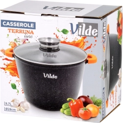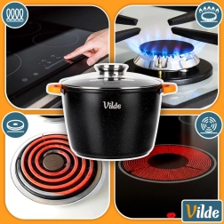 Univerzális felhasználás: gáz, elektromos, üvegkerámia, indukció, valamint sütőben 200 °C-ig (fedő nélkül). Eredeti VILDE termék a TERRUNA AROMA vonalból.