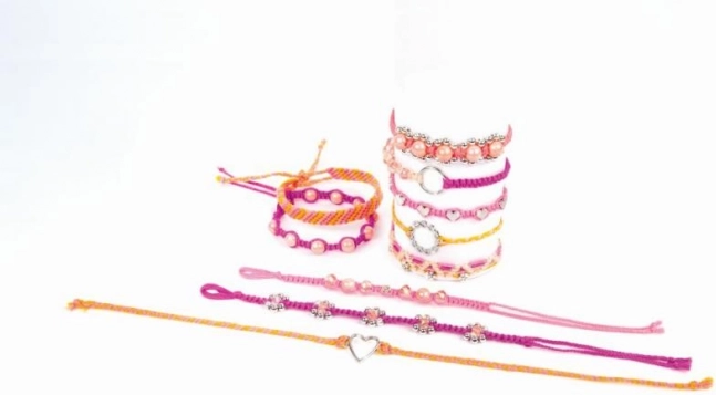A készlet széles választékban tartalmaz szálakat és gyöngyöket élénk és trendi színekben, amelyek lehetőséget nyújtanak egyedi dizájnok megalkotására.