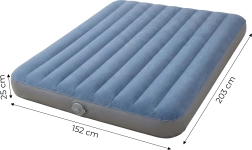 Az INTEX felfújható ágy megbízható megoldás vendégeknek, utazáshoz és kempingezéshez. A tartós PVC szerkezet Fiber‑Tech technológiával több száz poliészter szálat használ, amelyek idővel nem nyúlnak meg, így a matrac megtartja formáját ismételt használat után is. A Dura‑Beam technológia növeli a merevséget és a stabilitást, csökkenti a hintázást, és jobb gerinctámaszt nyújt.