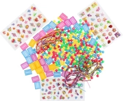 Színes gyöngyök, négyzet alakú elemek, gumiszálak és matricák – csak nyisd ki, és kezdj alkotni további vásárlás nélkül.