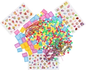 - Műanyag gyöngyök, rugalmas gumiszálak, hab matricák