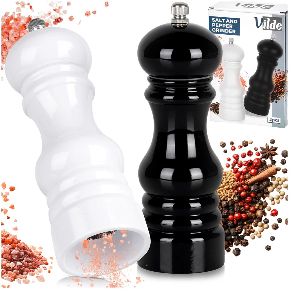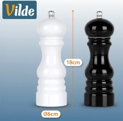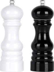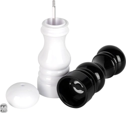 Praktikus, 18 cm magas, fekete és fehér kézi őrlőből álló szett a só és bors könnyű megkülönböztetéséhez. Strapabíró ház és kerámia őrlőszerkezet, amely a kemény szemekkel is megbirkózik, finom és durva őrlést kínál, valamint egyszerű utántöltést és tisztítást. Remek választás minden konyhába és a gasztronómiába is.