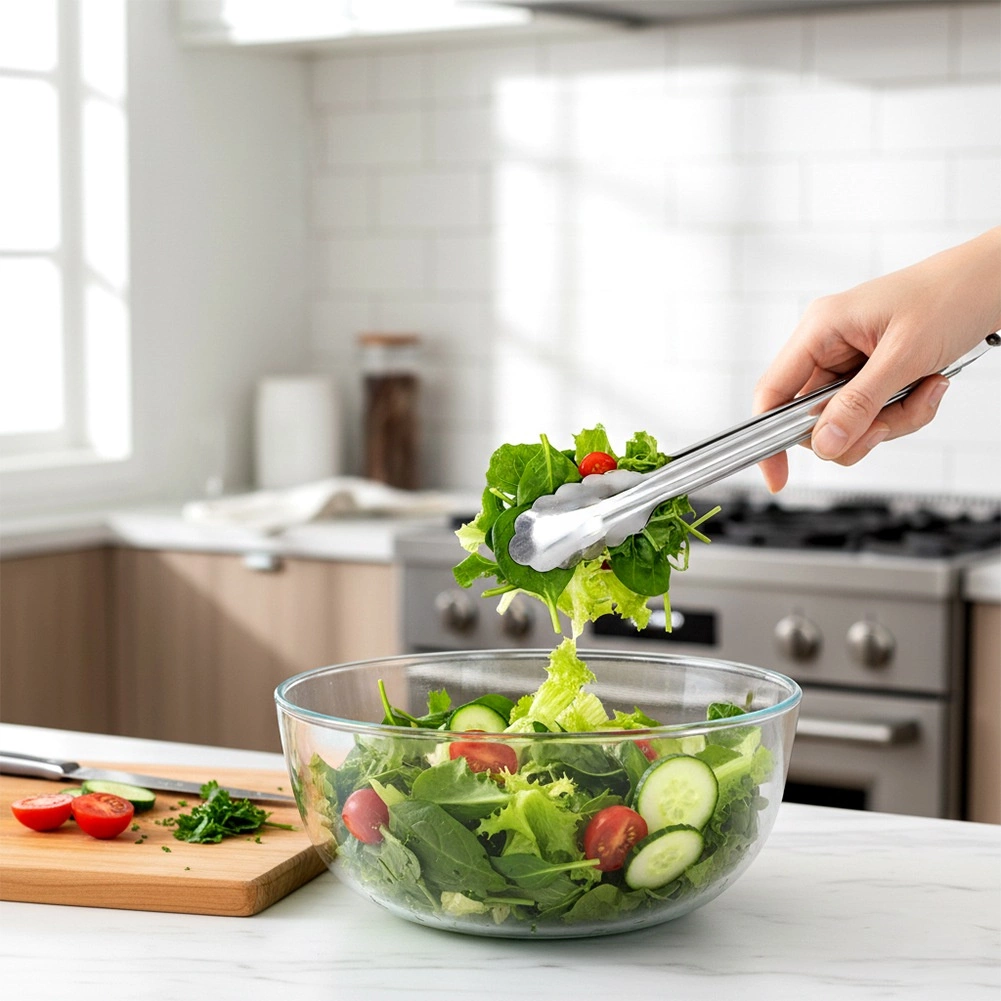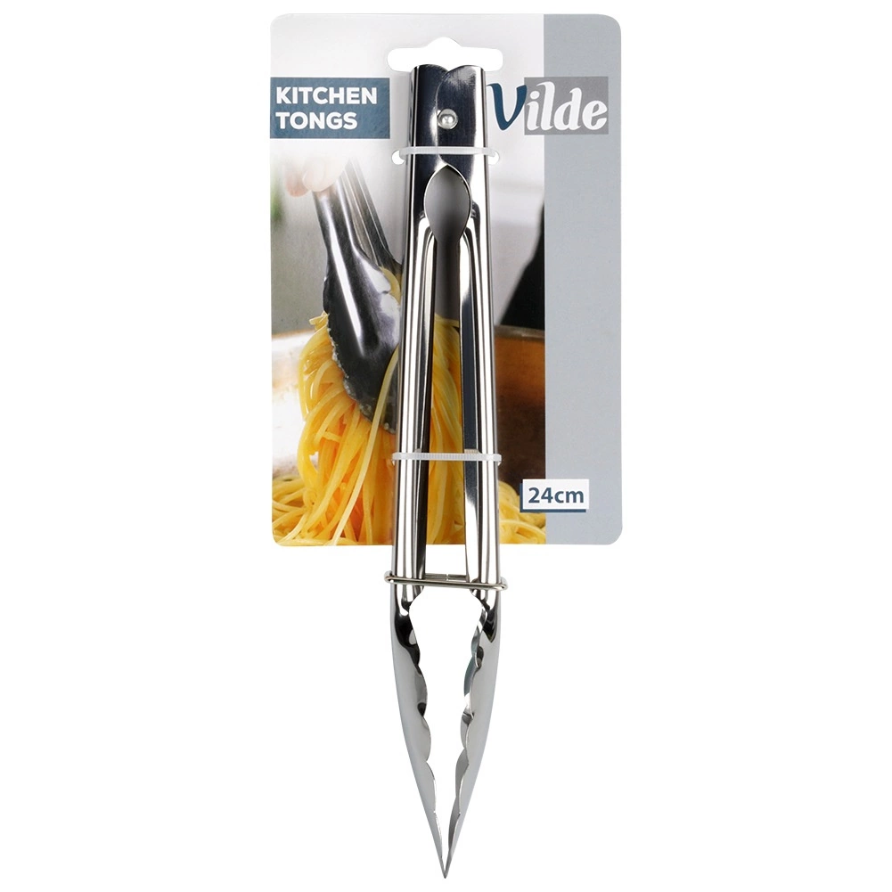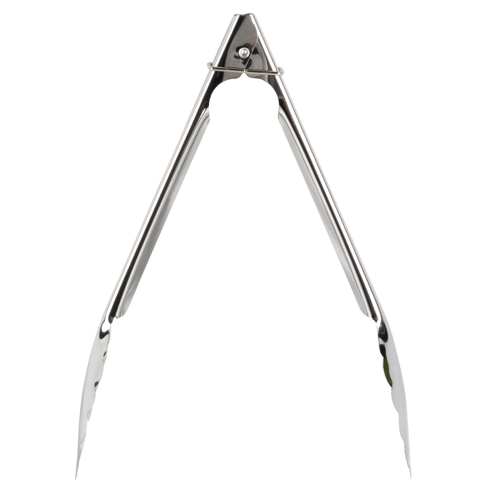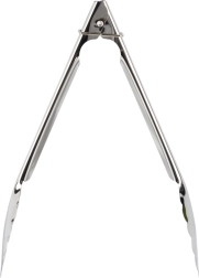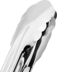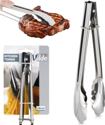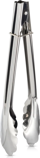 A univerzális rozsdamentes acél konyhai csipesz erős, tartós és kényelmesen kezelhető. A recézett pofák biztonságosan megfogják a húst, zöldséget és pékárut anélkül, hogy megsértenék az ételek felületét. Alkalmas saláták tálalásához, steakek forgatásához a serpenyőben és grill mellett végzett munkához is.