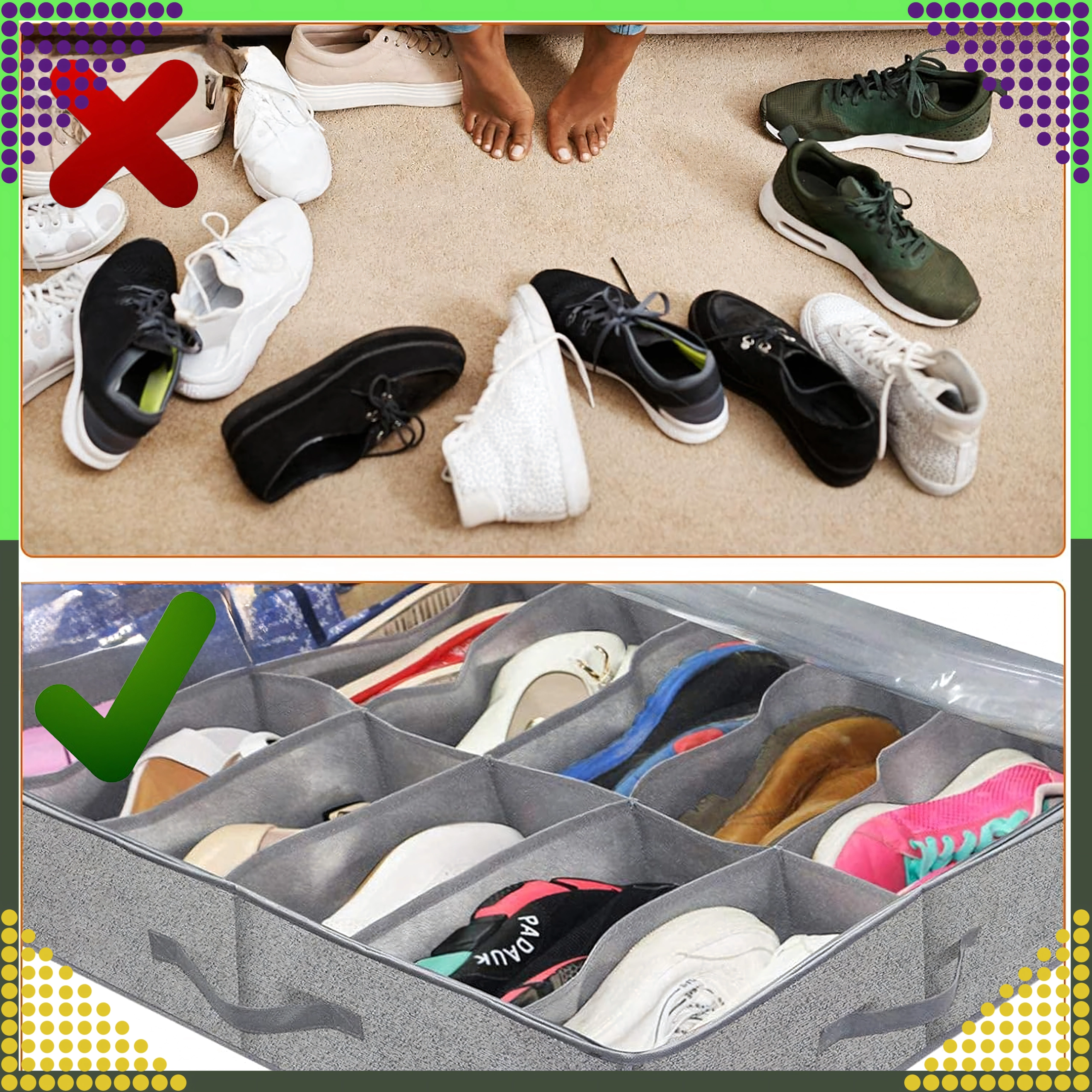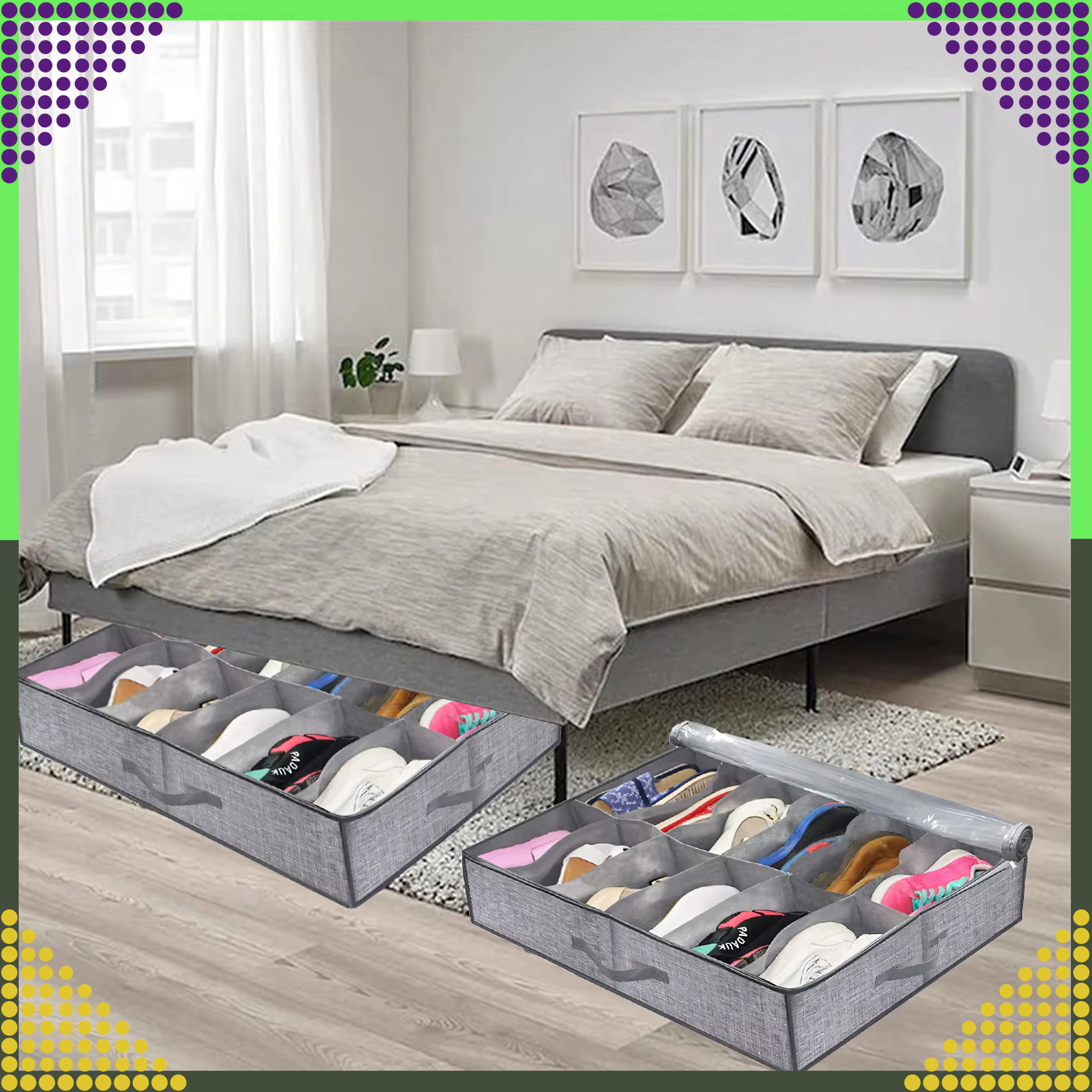 - Összecsukható ágy alatti cipő/ruha rendező