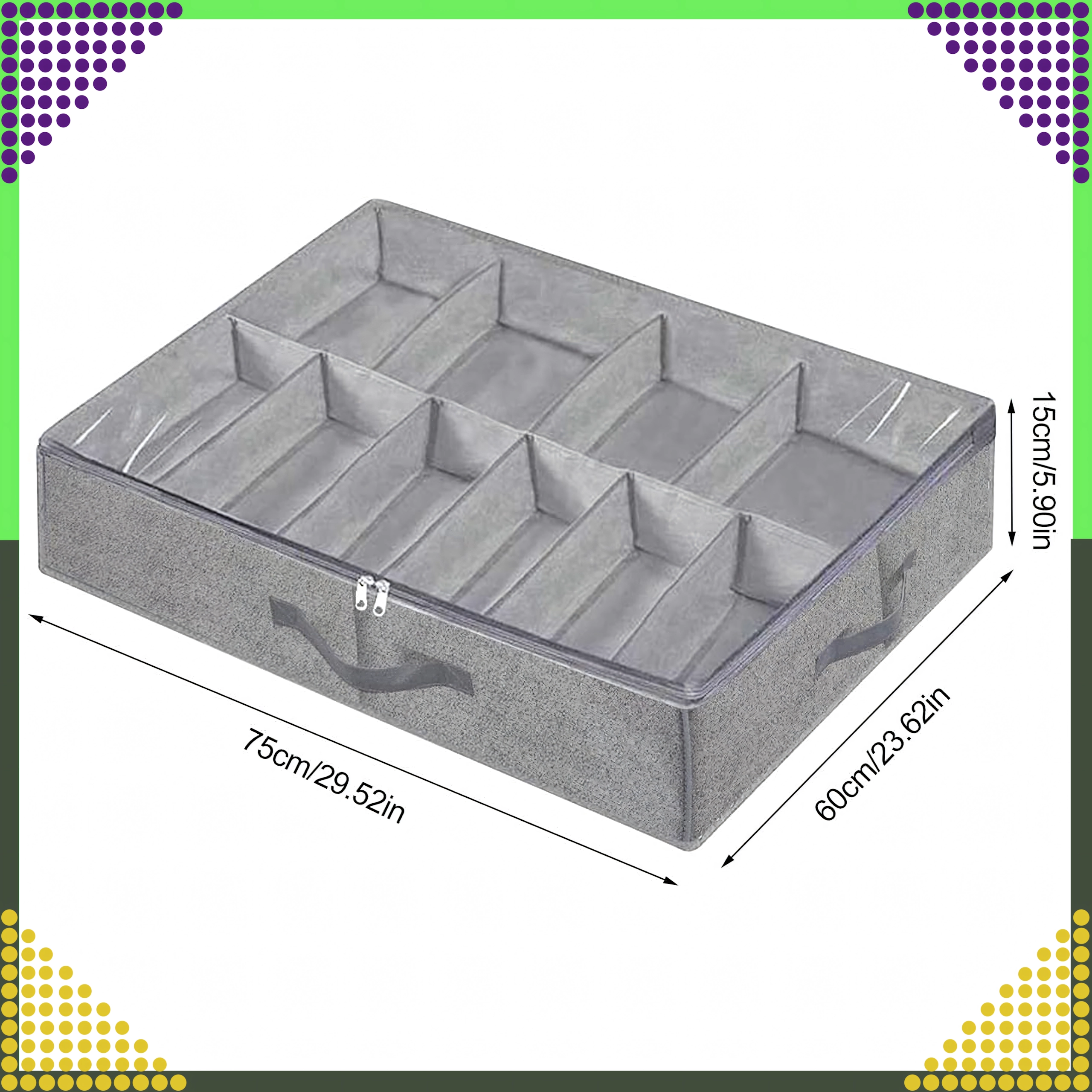 Tartson rendet otthonában a lábbelik és textíliák praktikus tárolási megoldásával. Ez a lapos rendező ideális ág y alatti vagy szekrénybeli tároláshoz, ahol helyet takarít meg, és az elemeket áttekinthetően, elkülönítve tartja. Átlátszó, cipzáras fedéllel rendelkezik a tartalom gyors áttekintéséhez, erős fogantyúkkal a könnyű kihúzáshoz, valamint összecsukható kialakítással a helytakarékos elpakoláshoz, amikor épp nincs használatban.