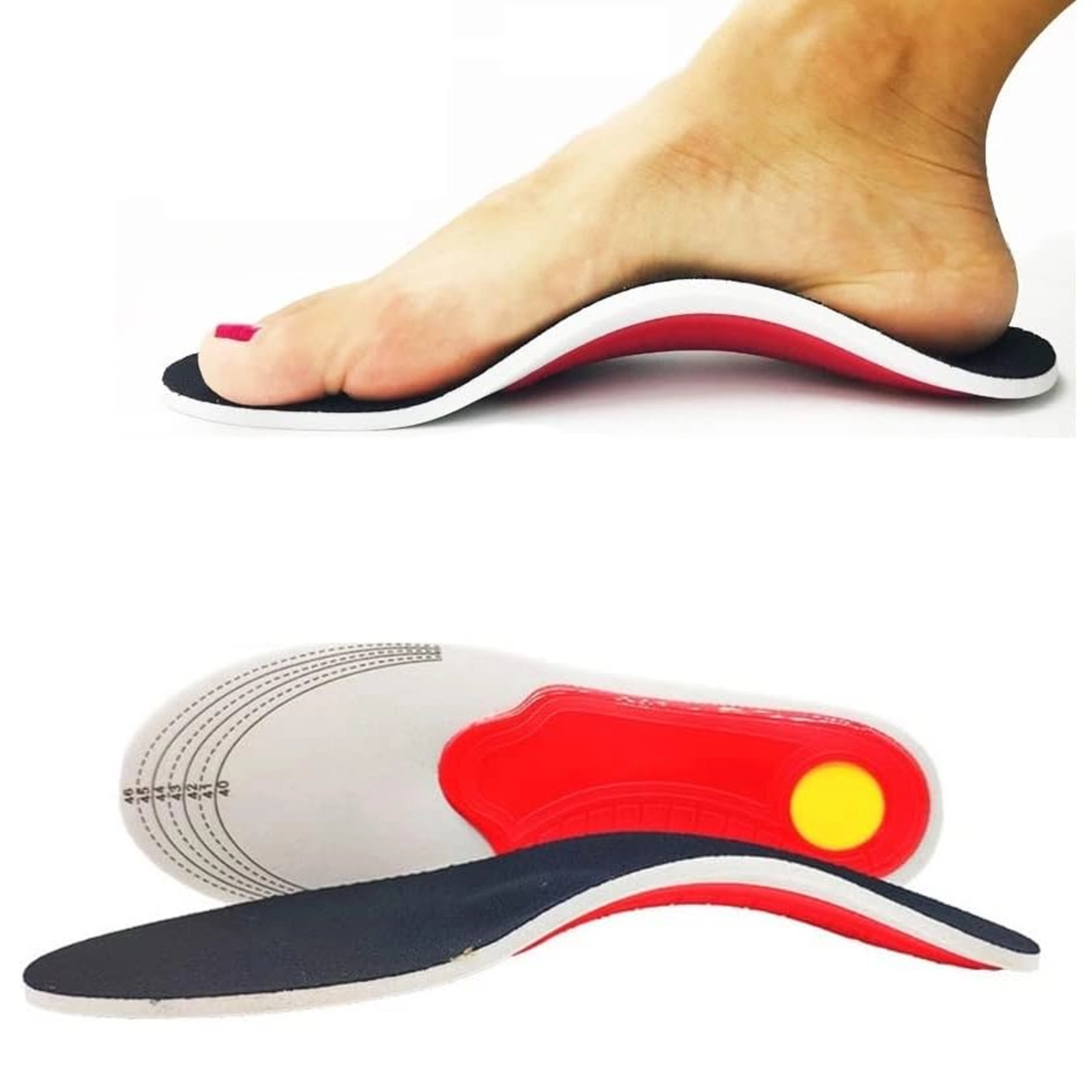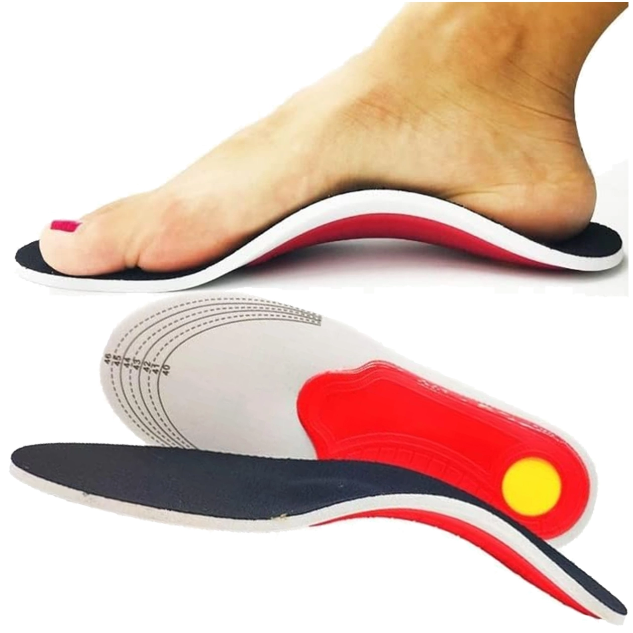 Ezek a könnyű és rugalmas EVA habból készült ortopéd cipőbetétek a stabilitás, a kényelem és a láb egészséges tartása érdekében készültek. A formázott boltozattámasz segít megelőzni a hosszboltozat süllyedését, míg a metatarsalis párna természetesen oszlatja el a nyomást az előláb területén, és enyhülést ad a harántsüllyedésnél.
