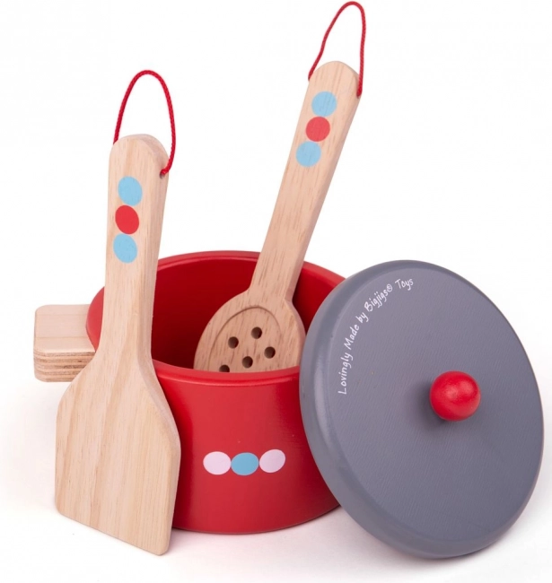 Ez a fa edénykészlet a Bigjigs Toys-tól tökéletes a fiatal szakácsok számára, akik szeretnének elkészíteni első fantasztikus ételeiket. Tartalmaz serpenyőket, fazekakat és konyhai eszközöket, amelyek javítják a kreatív játékot és a készségek fejlesztését.