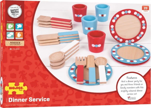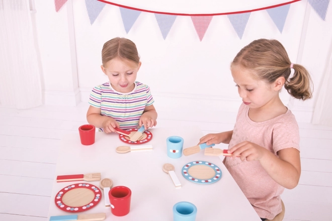 Ez a színes fa étkészlet a fiatal, kezdő szakácsoknak készült, akik szeretnék megteríteni saját vacsorájukat és teadélutánukat. Kiváló kiegészítő minden fa játszókonyhához, a készlet tartalmaz:< /p>