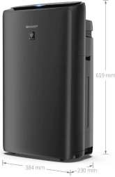 Az intelligens SHARP UA-KIN42E-H légtisztító párásítással a Plasmacluster Ion 25000 technológiát, a hármas mechanikus szűrést (HEPA-val) és a levegőminőség-jelzőt kínálja. 28 m²-ig ajánlott helyiségekhez, hatékonyan eltávolítja a 0,3 μm méretű részecskék 99,97%-át, csökkenti a baktériumokat, vírusokat, allergéneket és penészt, mérsékli a szagokat és a sztatikus elektromosságot, egyúttal javítja a bőr hidratáltságát is.