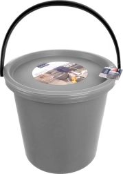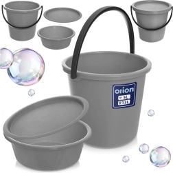 Ez a 3 részes készlet egy nagy vödröt (13 l), egy kompakt tálat (5 l) és egy pontosan illeszkedő fedőt kombinál, amely a vödörre és a tálra is használható. Így univerzális megoldást kap takarításhoz, mosáshoz, áztatáshoz és folyadékok szállításához, kiömlés kockázata nélkül. A szürke színű, tartós műanyag könnyen tisztán tartható és kellemesen könnyű a mindennapi használathoz.