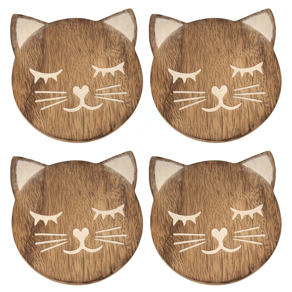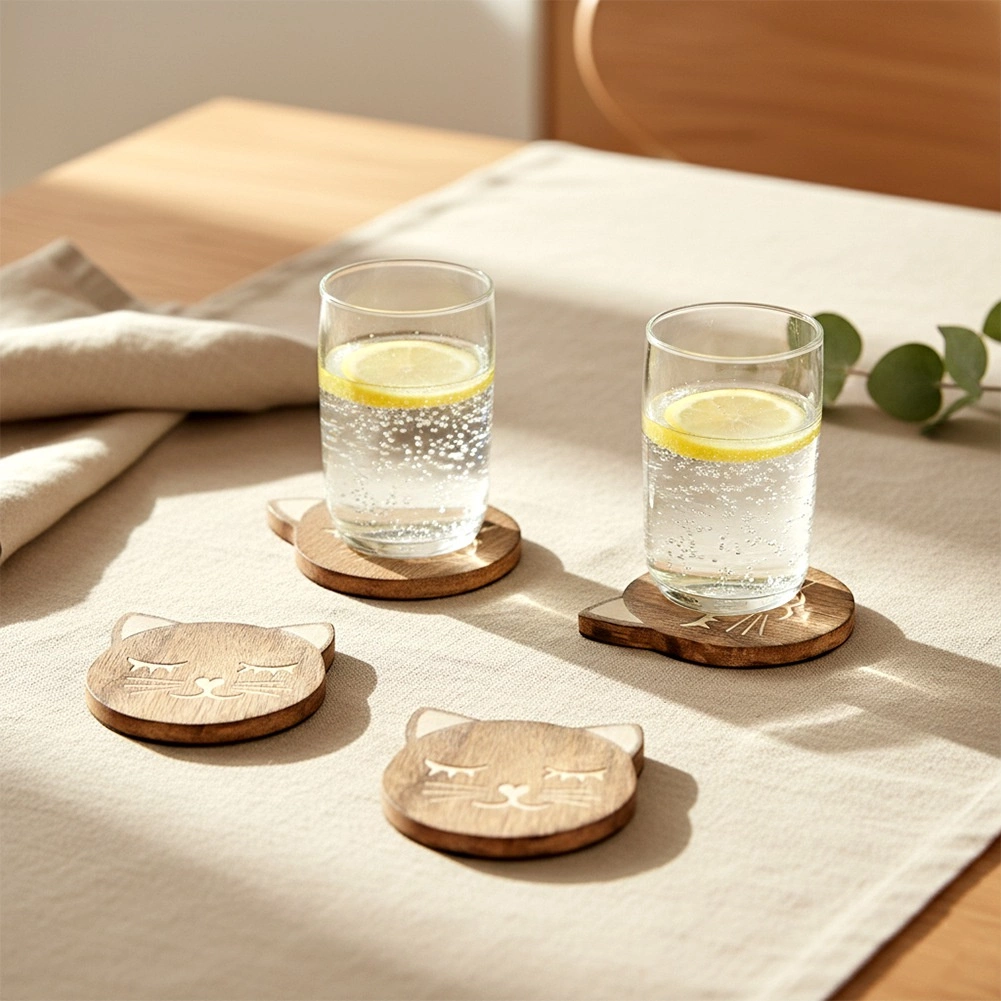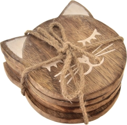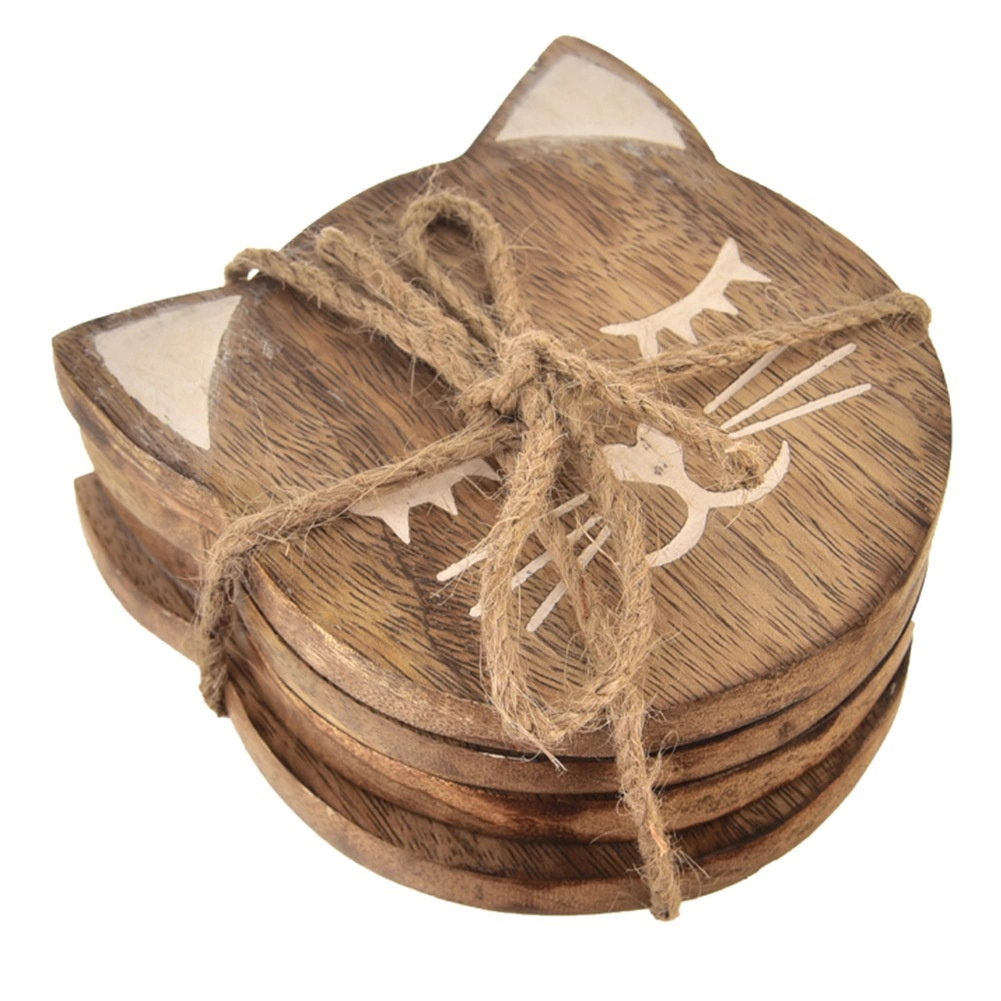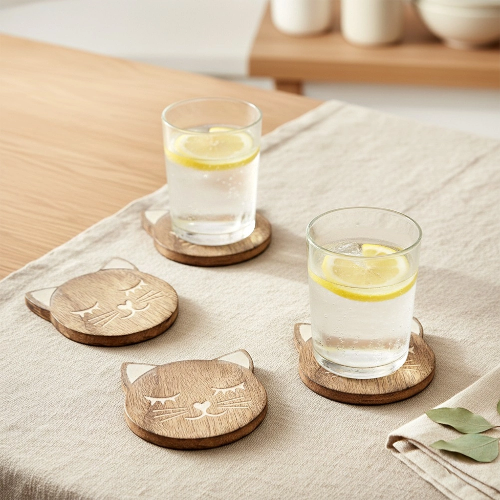 Fedezze fel a praktikus és dekoratív poháralátéteket, amelyek a funkcionalitást egyedi stílussal ötvözik. Természetes mangófából készültek, finoman gravírozott macskamotívummal, és megbízhatóan óvják a felületeket a forró és hideg italoktól, a pohárnyomoktól és a karcolásoktól.