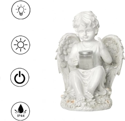 Teremtsen nyugodt, otthonos hangulatot az angyalszoborral, mely napelemes LED megvilágítással rendelkezik. A részletgazdag szárnyak, finom vonalak és a diszkrét meleg fény elegáns kiegészítővé teszik kertbe, teraszra, erkélyre és kegyeleti helyre egyaránt.