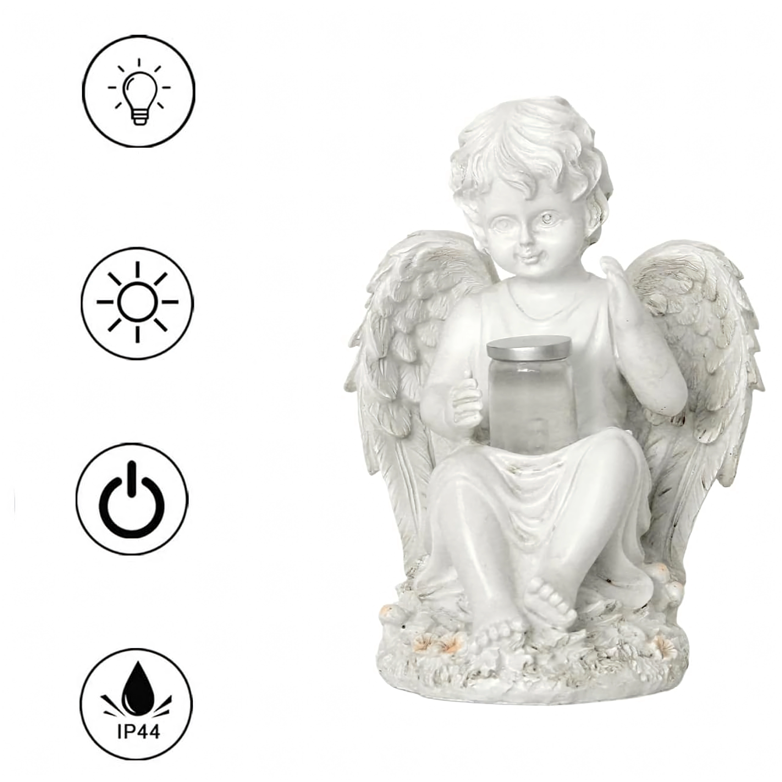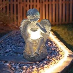 Varázslatos kültéri dekoráció: tartós műgyantából készült napelemes angyalszobor, amely nappal díszít, éjjel pedig finoman világít. Ideális kertbe, teraszra, illetve emlékfénynek is. A napelemes tápellátás, a meleg LED fény és az időjárásállóság gondtalan használatot és hosszú élettartamot biztosít.