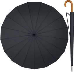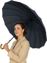 Elegáns és rendkívül tartós hosszú esernyő 24 megerősített bordával, amely ötvözi a klasszikus stílust, a magas szélállóságot és az automatikus nyitás kényelmét. A nagy, 115 cm-es kupola megbízható védelmet nyújt egy személynek vagy párnak is, a vízlepergető és gyorsan száradó anyag megkönnyíti a gondozást, míg a ívelt fa fogantyú időtálló megjelenést ad. A csomag tartalmaz vállpántos tokot a kényelmes hordozáshoz.