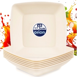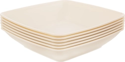 Praktikus, 6 darabos készlet modern, négyzet alakú mély tányérokkal mindennapi használatra otthonra és szabadtérre. A 17,5 × 17,5 × 4,7 cm méretű, 500 ml űrtartalmú tányérok könnyűek, tartósak és egyszerűen tisztíthatók. Alkalmas mikrohullámú sütőbe és mosogatógépbe is, ideális levesekhez, tésztákhoz, salátákhoz és egyserpenyős ételekhez. A minőségi, krémszínű anyag ütés- és repedésálló.