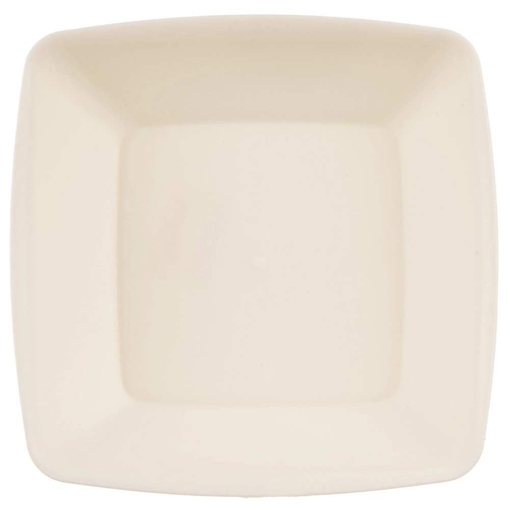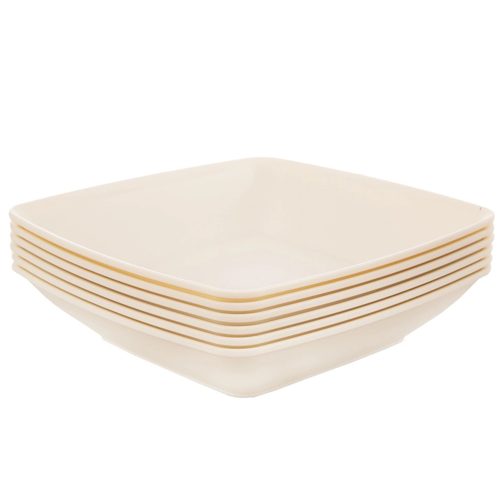 A krémszínű, négyzet alakú mély tányérok könnyen egymásra helyezhetők, helytakarékosak és ellenállnak az ütéseknek és eséseknek.