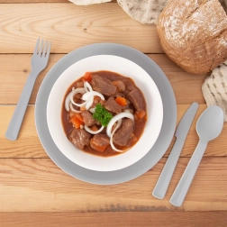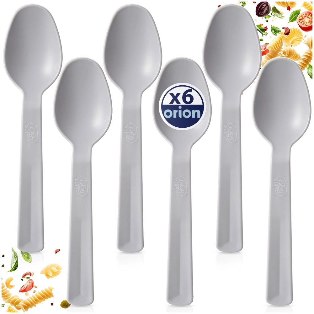 A 6 darab szürke műanyag kanálból álló készlet ideális választás mindennapi használatra és utazáshoz is. Minőségi kivitelének köszönhetően a kanalak könnyűek, ugyanakkor erősek és ellenállók a repedésekkel és karcolásokkal szemben. Ergonomikus formájuk kényelmes merítést biztosít levesekhez, desszertekhez és köretekhez.