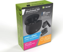 A TRACER S1 fülhallgatót azoknak tervezték, akik zavartalanul szeretnék élvezni a zenét, podcastokat és játékokat. Az aktív zajszűrés (ANC) hatékonyan csökkenti a környezeti zajokat irodában, közlekedésben és otthon, így teljes mértékben összpontosíthatsz. A Bluetooth 5.3 gyors és stabil kapcsolatot biztosít akár 10 m-ig, valamint zökkenőmentes váltást az eszközök között.