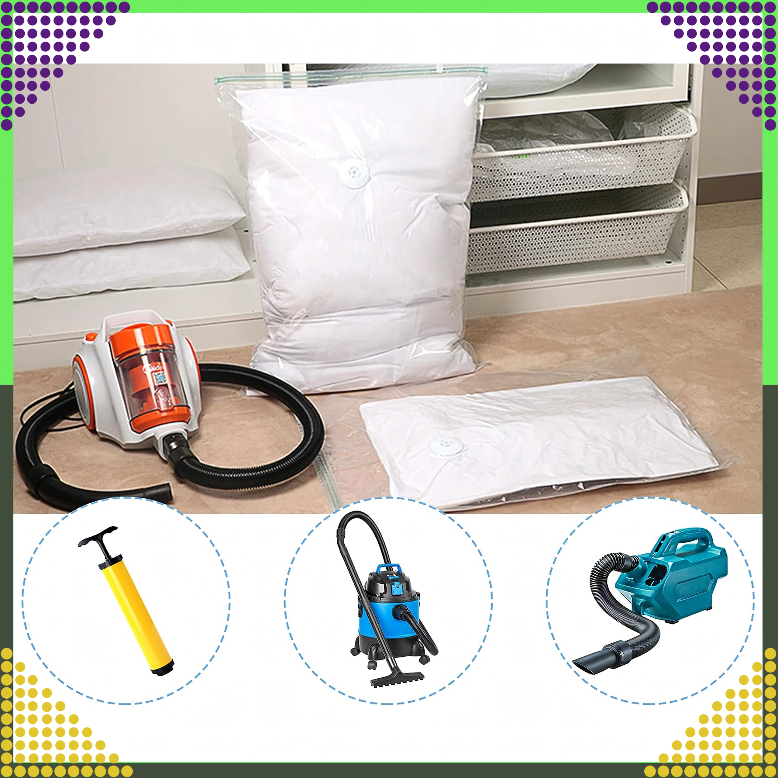 Helyezze be a dolgokat, zárja le a cipzárt, illessze a porszívó csövét a szelepre, és szívja ki a levegőt. Gyors, hatékony és többször használható megoldás.