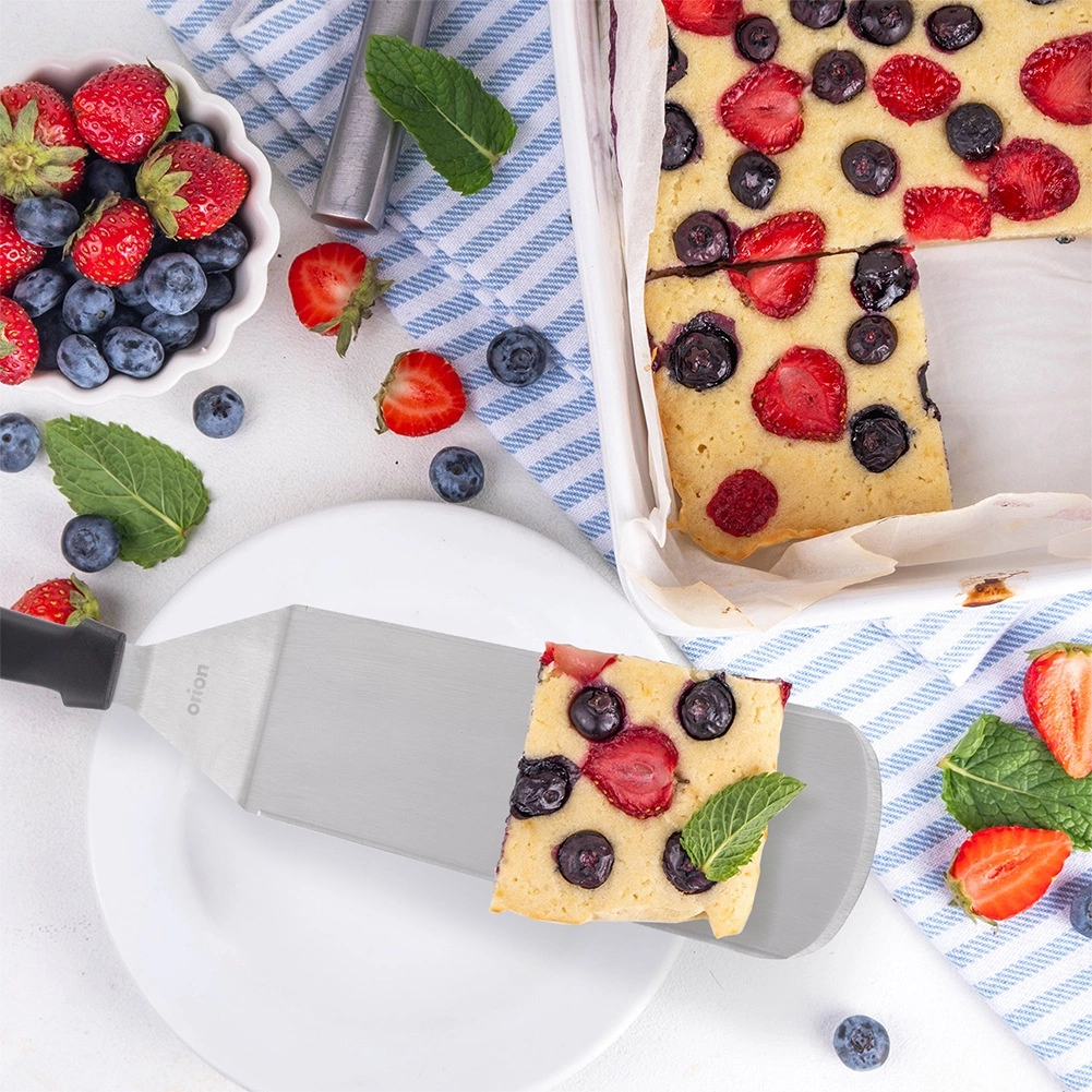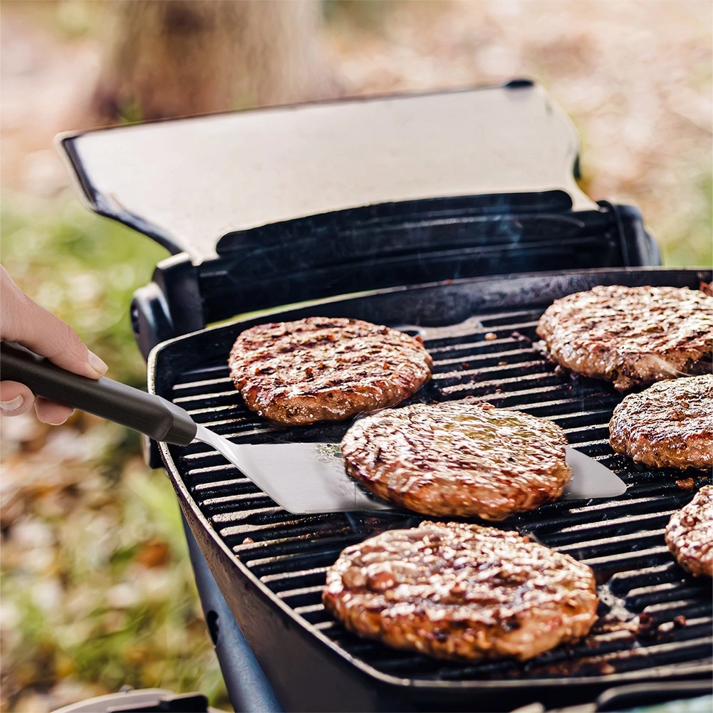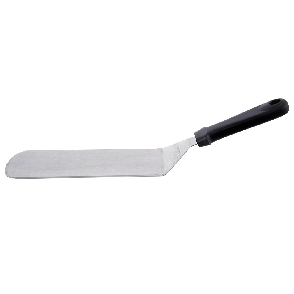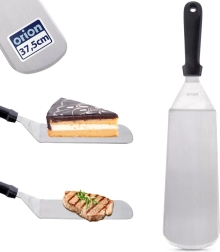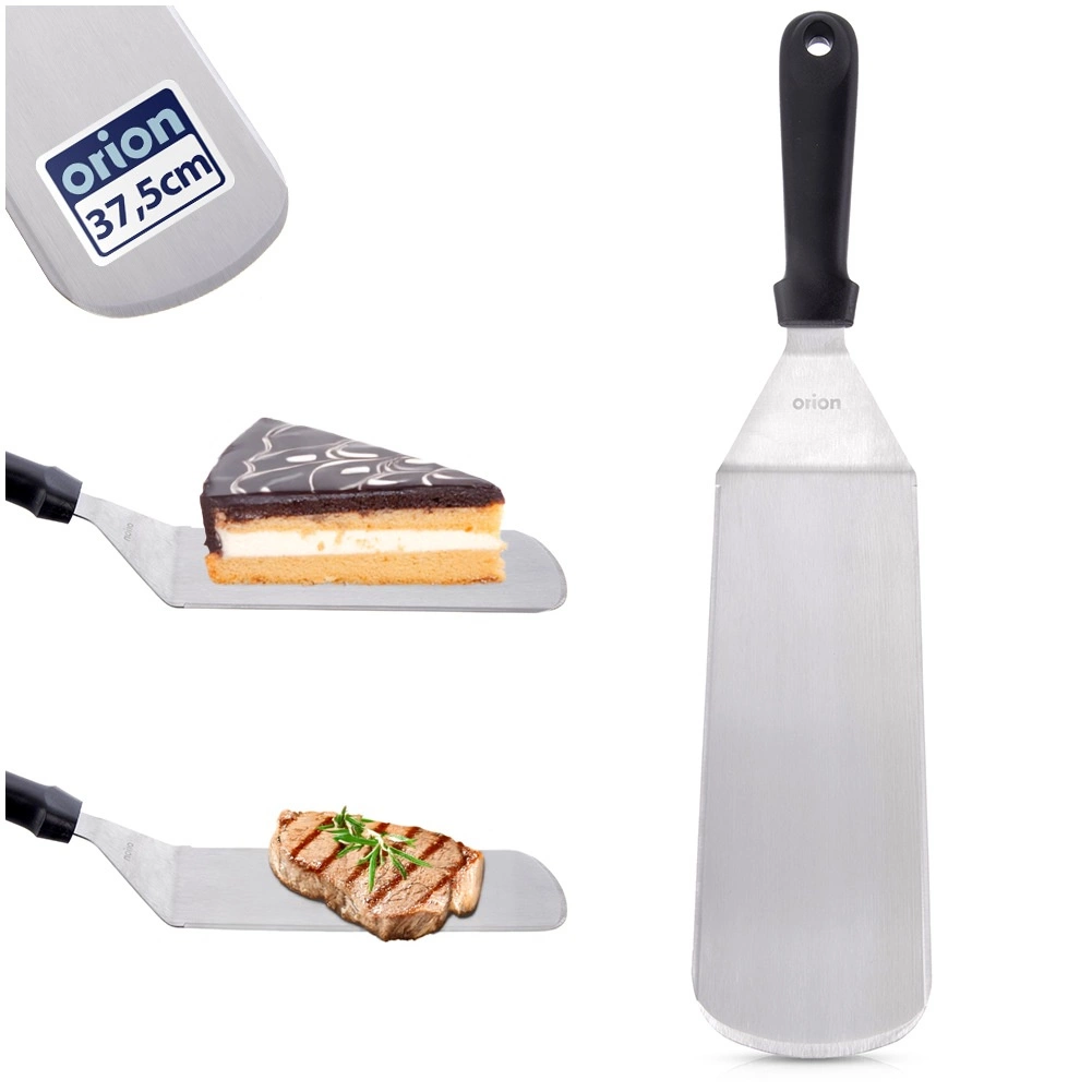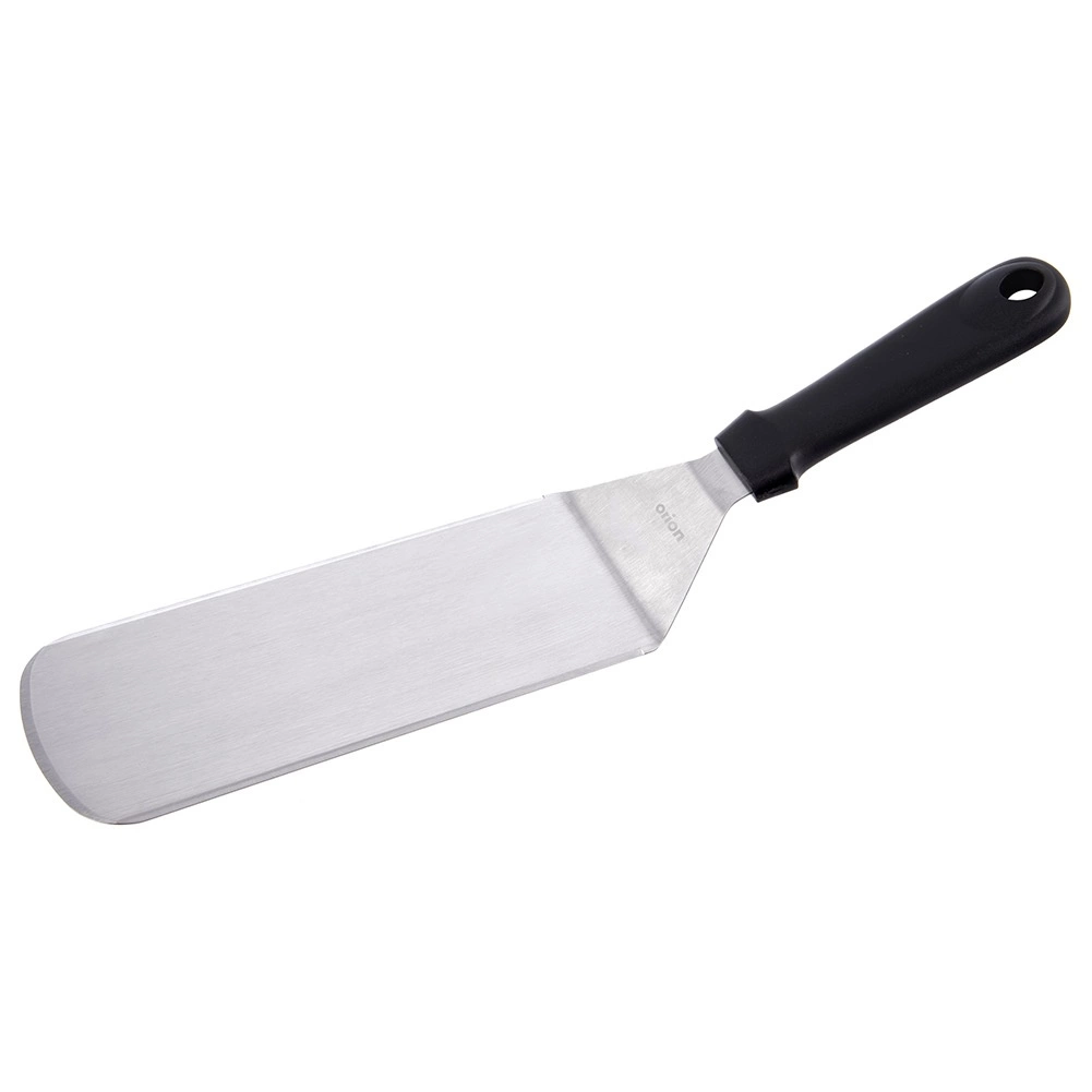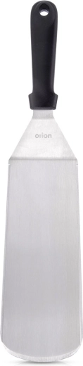Masszív, sima felületű acél penge, amely könnyedén alányúl a palacsintának, burgernek vagy halnak, és egyben tartja a teljes darabot.