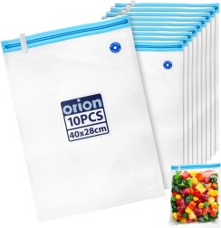 A 10 darabos vákuumtasak-készlet ideális húsok, zöldségek, sajtok, pékáruk és készételek tárolására. A dupla cipzárnak és a levegőkiszívó szelepnek köszönhetően légmentes környezet hozható létre, amely segít csökkenteni az oxidációt, a kiszáradást és a fagyási égést. Az egyik oldal sima, a másik texturált az egyenletes levegőkiszívásért.