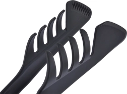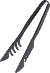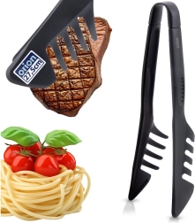 A 27,5 cm hosszú BLACKLINE fogó szélesebb, profilozott, fogazott végei biztos fogást adnak – spagetti, zöldség, hús és finom alapanyagok is csúszás nélkül tarthatók vele. A termoplaszt anyagnak köszönhetően könnyű, stabil, és kiválóan kezelhető a mindennapi főzés és grillezés során.