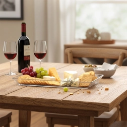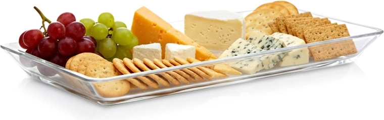 Sokoldalú üveg szervírozó tálca, amely minden asztalon jól mutat. Az átlátszó, sima üveg kiemeli a modern, ugyanakkor klasszikus stílust, és könnyen kombinálható bármilyen étkészlettel. Tökéletes előételek, sajtok, felvágottak, gyümölcsök, desszertek és apró snackek tálalásához.
