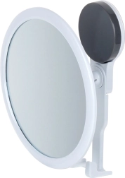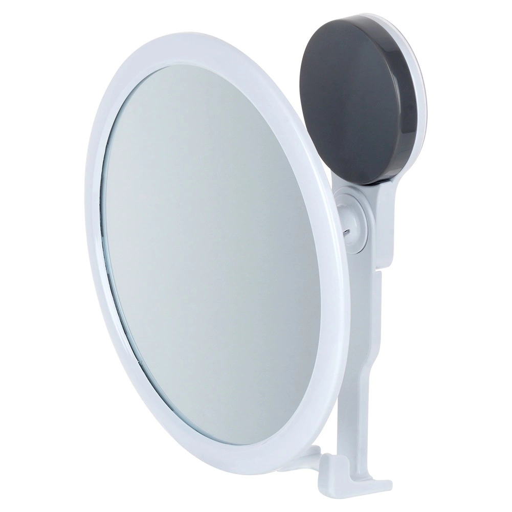 Praktikus, kerek, 17 cm átmérőjű kozmetikai tükör erős tapadókoronggal, fúrás nélküli felszereléshez. Állítható dőlésszöget, fehér műanyag keretet és integrált kampókat kínál apró kiegészítők számára, akár 2 kg-ig. Ideális a fürdőszobába sminkeléshez, borotválkozáshoz és a mindennapi ápoláshoz.