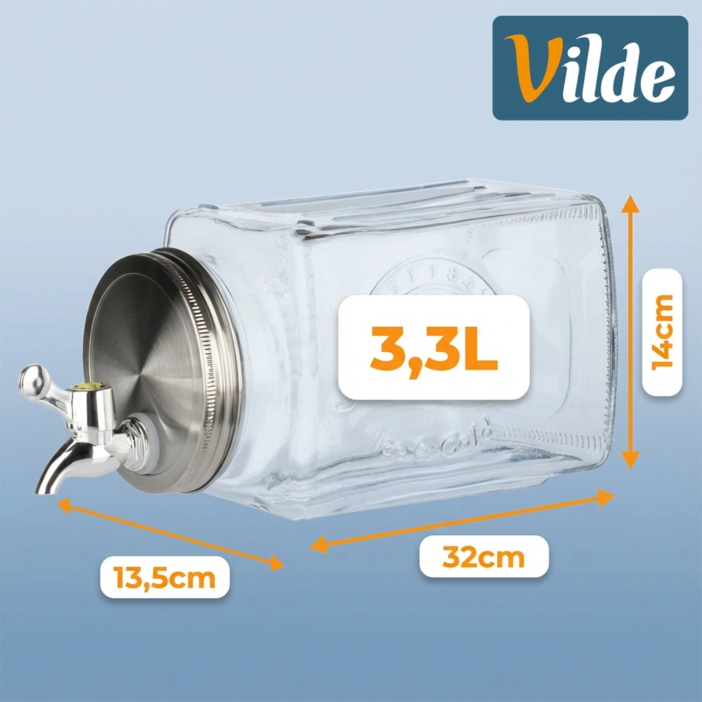 A csap kényelmes és egyenletes öntést biztosít felesleges kilöttyenés nélkül – ideális kerti partikra, családi összejövetelekre és mindennapi otthoni használatra, kávézókba vagy bárokba. Az adagoló tökéletes limonádéhoz, gyümölcsös vizekhez, jeges teákhoz, levekhöz és punchhoz. Eredeti Vilde márkatermék, európai szabványok szerint gyártva.