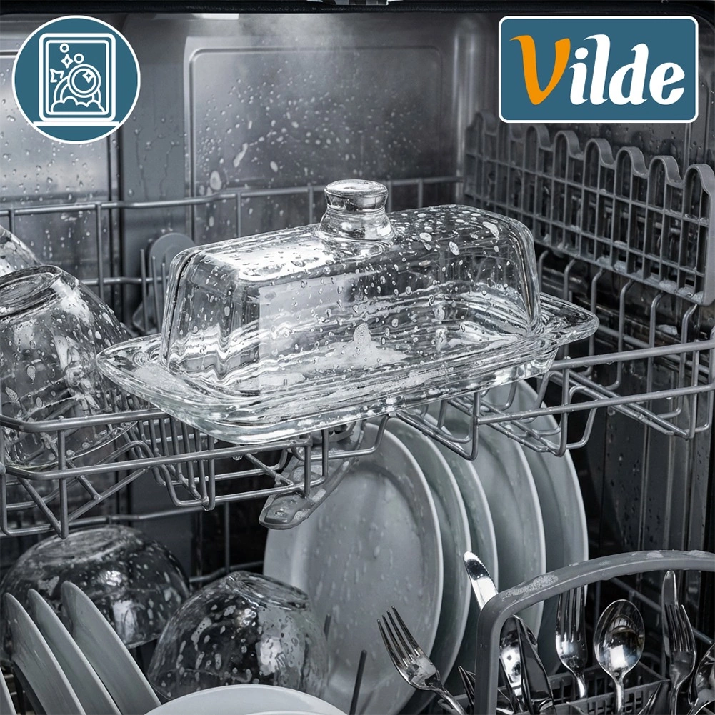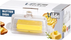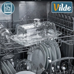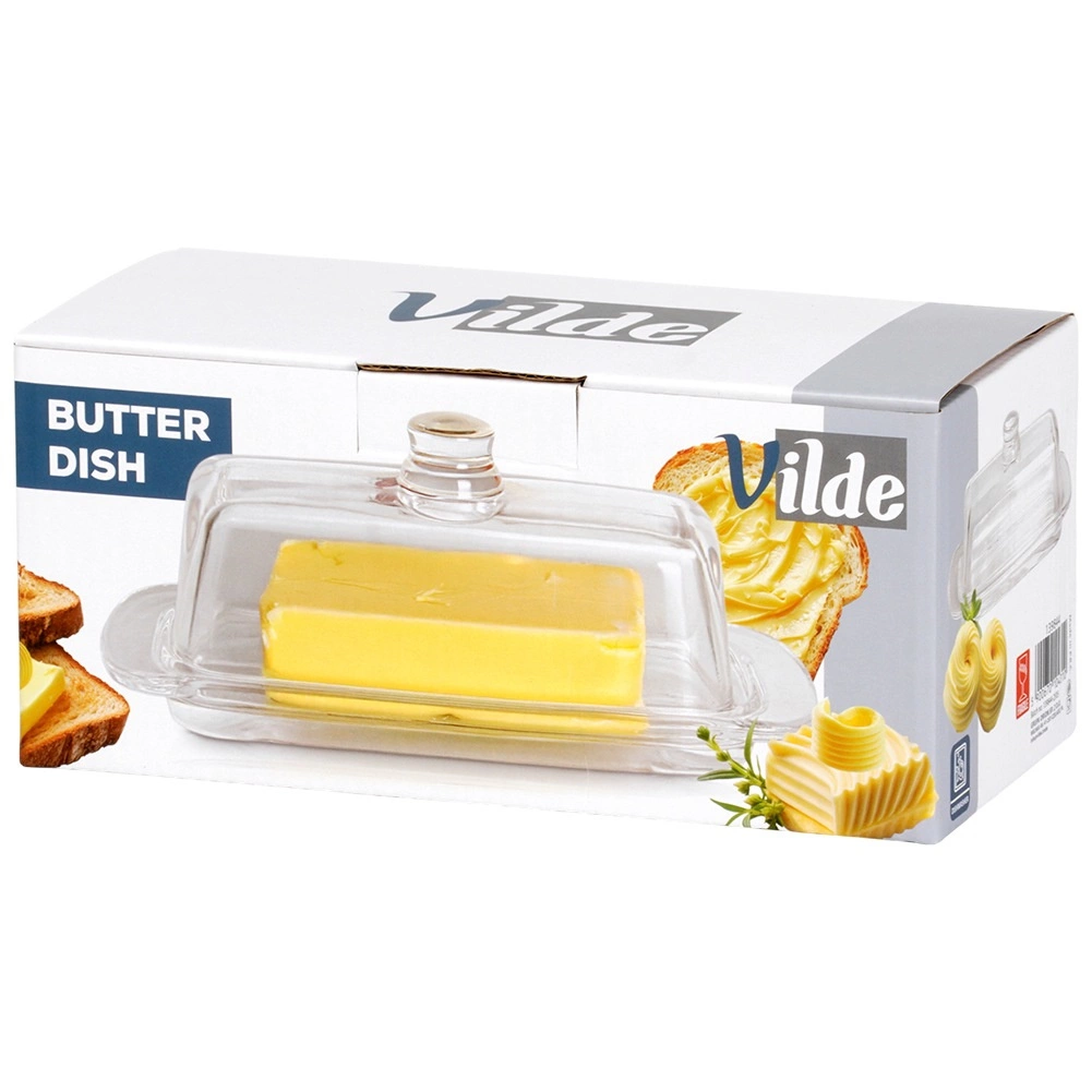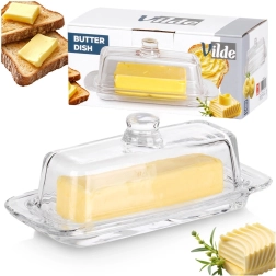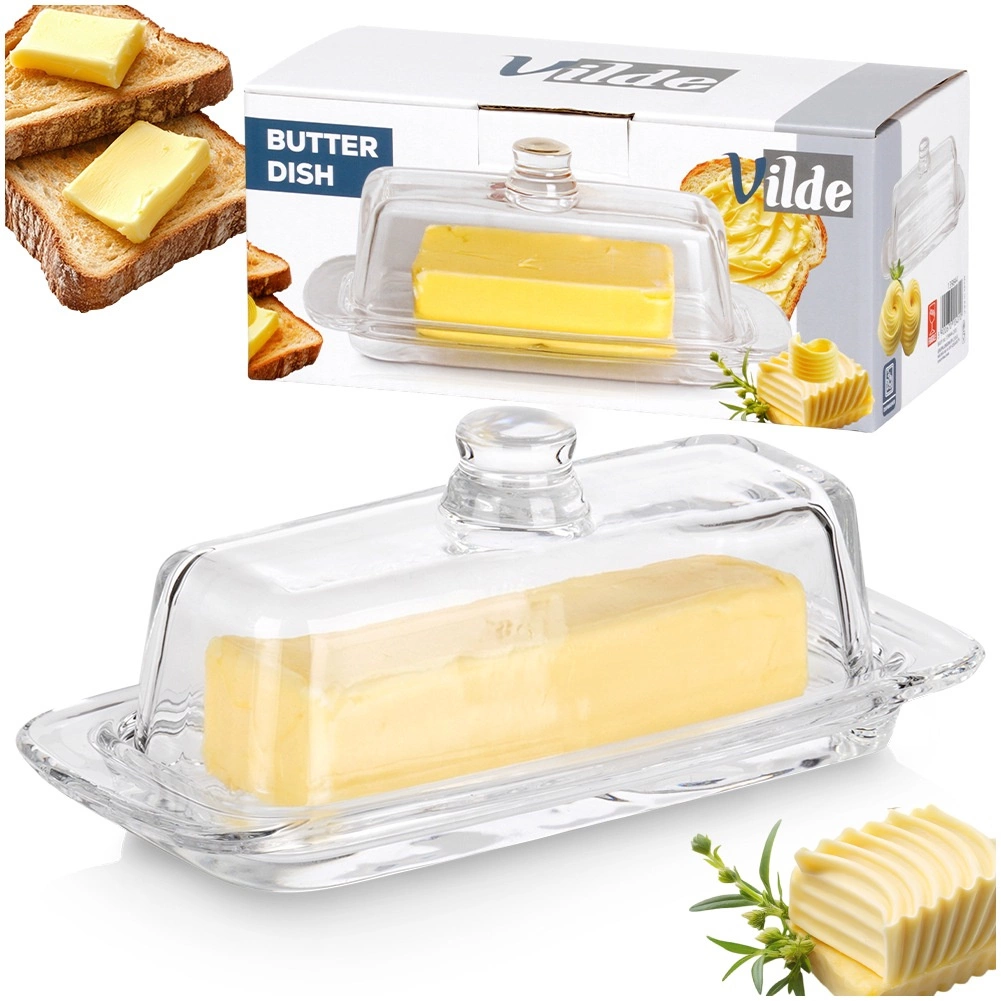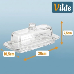 A stílusos VILDE üveg vajtartó ideális a mindennapi használathoz – a hűtőtől egészen az asztalig. Az átlátszó kivitel megkönnyíti a vaj mennyiségének ellenőrzését, az elegáns kupola fogantyúval pedig kényelmes használatot biztosít. Klasszikus formája minden terítékhez illik, és a vajat a tálalás vonzó részévé teszi.