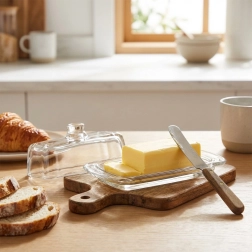 A masszív üvegkialakítás megóvja a vajat a kiszáradástól és a nem kívánt szagoktól. A fedél megőrzi a frissességet és a teljes ízt, míg a tartós anyag könnyen tisztítható – a vajtartó mosogatógépben is mosható.