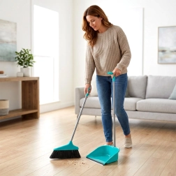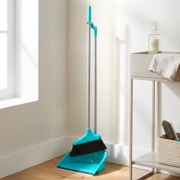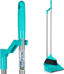Ez a türkiz színű seprű-lapát szett kényelmes, álló helyzetű takarítást kínál. A hosszú nyelek természetes testtartást biztosítanak és minimálisra csökkentik a hát megterhelését, míg a lapát gumipereme (2 cm széles) tökéletesen a padlóhoz simul, és a finom port is maradék nélkül összegyűjti.