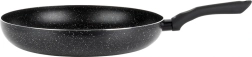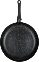 Elegáns, fekete kivitelű, gránit bevonatú serpenyő, megbízható segítőtárs sütéshez és pároláshoz. A masszív alumínium test gyors hőátadást biztosít és energiát takarít meg, a tapadásmentes felületnek köszönhetően pedig minimális zsiradékkal főzhet, és könnyen tisztítható, akár mosogatógépben is.