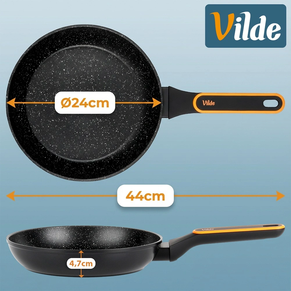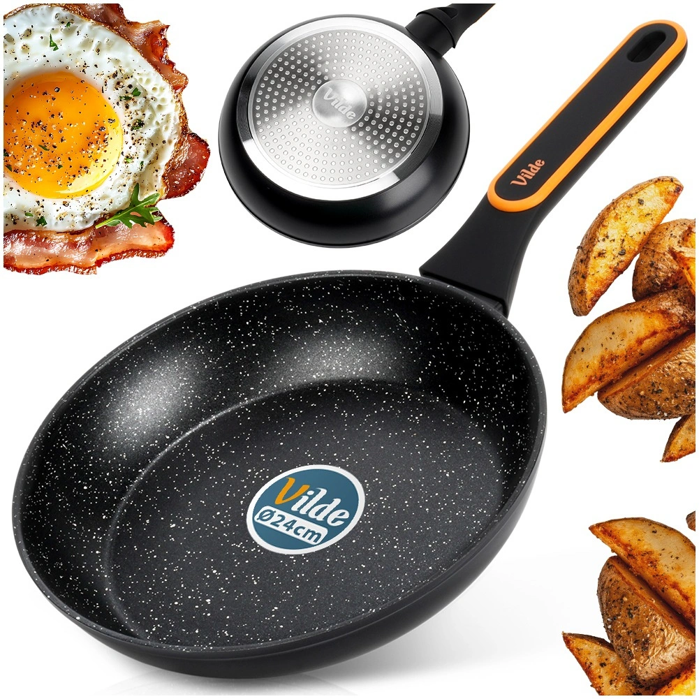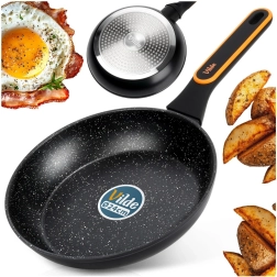 Univerzális, 24 cm átmérőjű gránit serpenyő mindennapi főzéshez. A tapadásmentes felületnek, a gyors és egyenletes felmelegedésnek, valamint a kényelmes, hideg nyelének köszönhetően minimális zsiradékkal készíthet egészséges és ízletes ételeket. Alkalmas minden típusú tűzhelyhez, beleértve az indukcióst is, és mosogatógépben mosható.