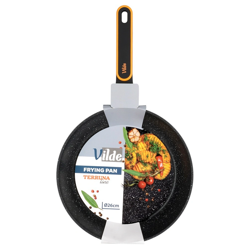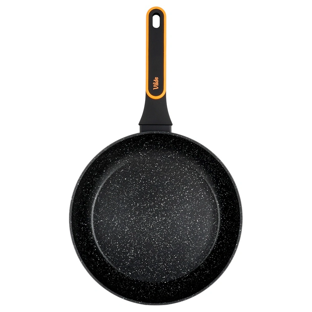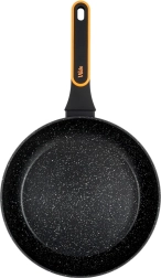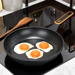 A serpenyő gáz-, elektromos-, üvegkerámia- és indukciós tűzhelyhez is alkalmas, és mosogatógépben mosható. Az ergonomikus, puha felületű nyél csúszásmentes, nem melegszik fel, és praktikus akasztófüllel rendelkezik. Az elegáns fekete–szürke design narancssárga akcentussal tökéletesen illik a modern konyhába.