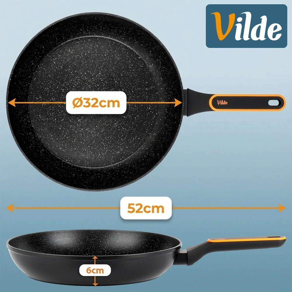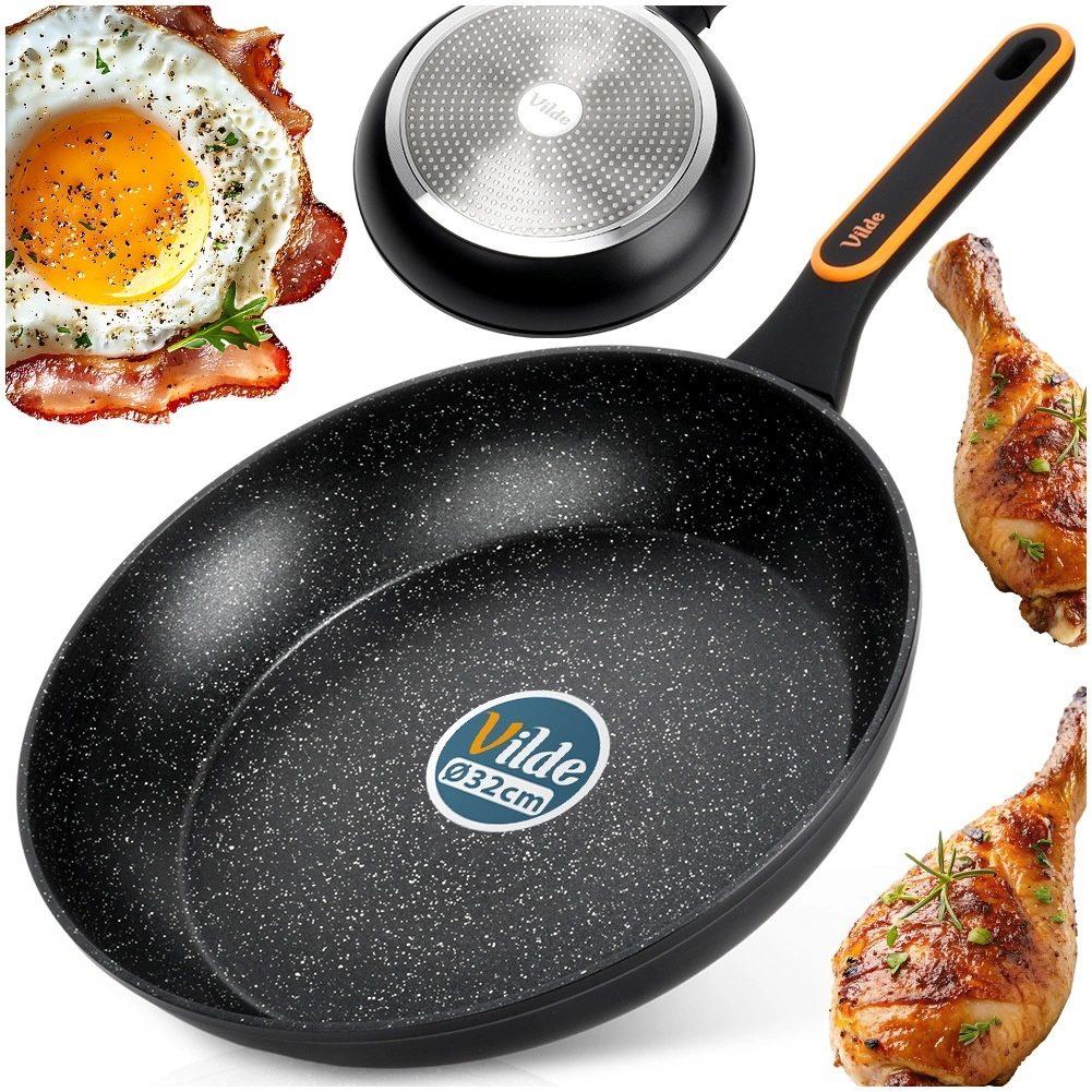 Univerzális, 32 cm átmérőjű gránit serpenyő mindennapi főzéshez. A tapadásmentes gránit felületnek, a gyors és egyenletes hőelosztásnak, valamint a kényelmes, nem melegedő nyélnek köszönhetően minimális zsiradékkal készíthet húst, zöldséget és tojást minden tűzhelytípuson, beleértve az indukciót is.