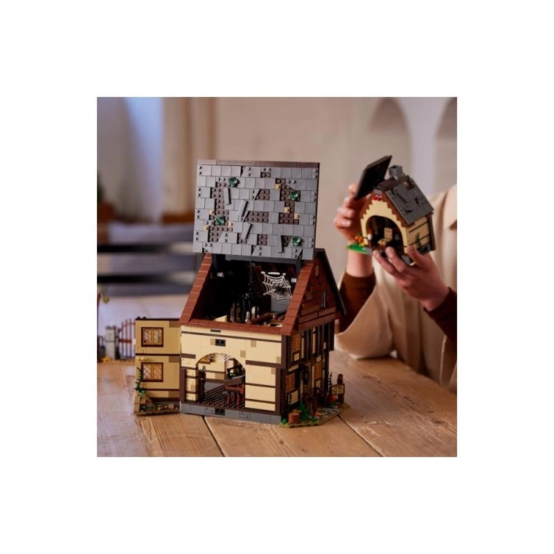 Fedezd fel a Disney Hókusz pókuszból ismert ikonikus kunyhót egy rendkívül részletes készletként rajongóknak és gyűjtőknek. A modell többféleképpen nyitható a belső tér könnyű eléréséhez: láthatod a múzeumi boltocskát, a denevérekkel teli boszorkányhálót, és a LEGO világító kockával ellátott üstöt, amely alulról megvilágítja a tüzet. Nem hiányzik a Varázskönyv, a Dani bezárására szolgáló oldalsó helyiség és a működő vízikerék kéménnyel, amely forgatáskor rózsaszín füstöt „ereget”.