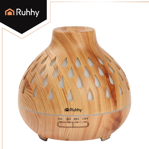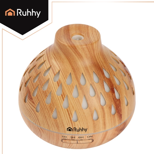 Alakítson ki otthon nyugalom szigetét. A RUHHY ultrahangos aroma diffúzor néhány csepp illóolajjal dúsított vizet finom, hűvös köddé alakítja, amely párásítja a levegőt és kellemes illattal tölti meg a helyiséget. A világos fa dekor jól illik a modern és skandináv enteriőrökhöz, a csendes működés pedig ideális hálószobába, gyerekszobába és irodába.