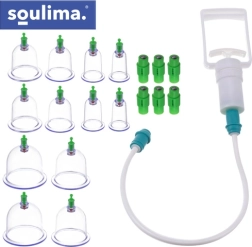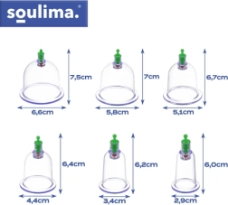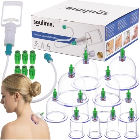 A SOULIMA vákuumos köpölyöző készlet praktikus megoldás láng nélküli, otthoni köpölyözéshez. A kézipumpával könnyedén állítható a vákuum, ami biztonságosabb és pontosabb terápiát biztosít. A különböző méretek lehetővé teszik a nagyobb izomcsoportok és a kisebb, érzékenyebb területek kezelését. A mágneses feltétek támogatják az akupresszúrás pontok célzott stimulálását.