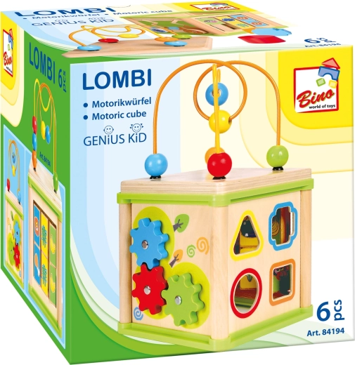 Fedezze fel a Bino 5 az 1-ben motorikus kockáját, amely a gyerekeknek alak- és színfelismerést, a finommotorika és a logikus gondolkodás fejlesztését kínálja. Minden oldal más-más tevékenységet rejt – a formabedobótól, a fogaskerekeken és a kanyargós pályákon át a tetőn található gyöngylabirintusig. A masszív fa szerkezet, a biztonságos, lekerekített élek és az élénk színek minden kis felfedezőt lenyűgöznek.