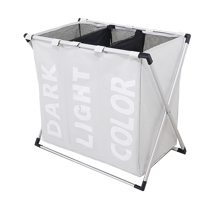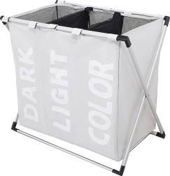 Praktikus szennyesválogató három különálló rekesszel DARK, LIGHT és COLOR számára, amely már a szennyes gyűjtésekor megkönnyíti a mosást. Tartós, vízlepergető zsákok, könnyű alumínium keretezés és összecsukható kialakítás füles fogantyúkkal és tépőzárral a gyors szereléshez, illetve állvány nélküli használathoz.