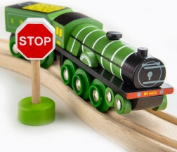 A Bigjigs Rail márkájú Flying Scotsman fa mozdony történelmet hoz otthonába. A készlet tartalmaz 1 mozdonyt, 1 vagont és 3 pályarészt. A mozdony kiváló minőségű és felelősen beszerzett természetes anyagokból készült, ami biztosítja megbízhatóságát és tiszta európai szabványok szerinti kidolgozását.