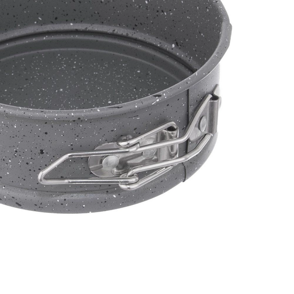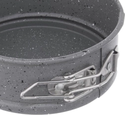 Praktikus, kisméretű forma, ideális mini torták, sajttorták és hűtött desszertek készítéséhez. A gránit tapadásmentes bevonat minimalizálja az odasülés kockázatát, és megkönnyíti a tálalást és a tisztítást. A zárral ellátott szétnyitható perem és a kivehető alj kényelmes kiemelést biztosít még a törékeny piskóták esetén is.