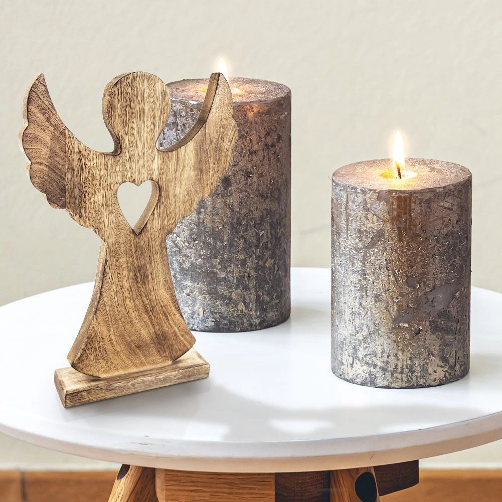 Elegáns mangófa angyal talppal és szív kivágással – stílusos, egész éves dekoráció. A fa természetes erezete rusztikus hatást kelt, remekül illik különböző enteriőrökhöz, és az stabil téglalap alakú talapzatnak köszönhetően. Ideális eredeti ajándéknak, valamint karácsonyi vagy téli díszítésnek.
