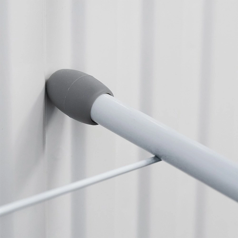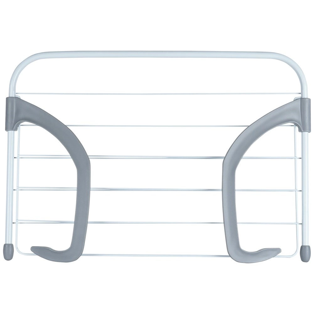 A felszerelés gyors és szerszám nélkül megoldható – elég felakasztani a masszív műanyag kampókkal. Használat után a szárító laposra hajtható, és könnyen elfér szekrényben vagy fiókban. A fehér színű, tartós fém szerkezet és a szürke fogantyúk stabilitást és hosszú élettartamot biztosítanak.