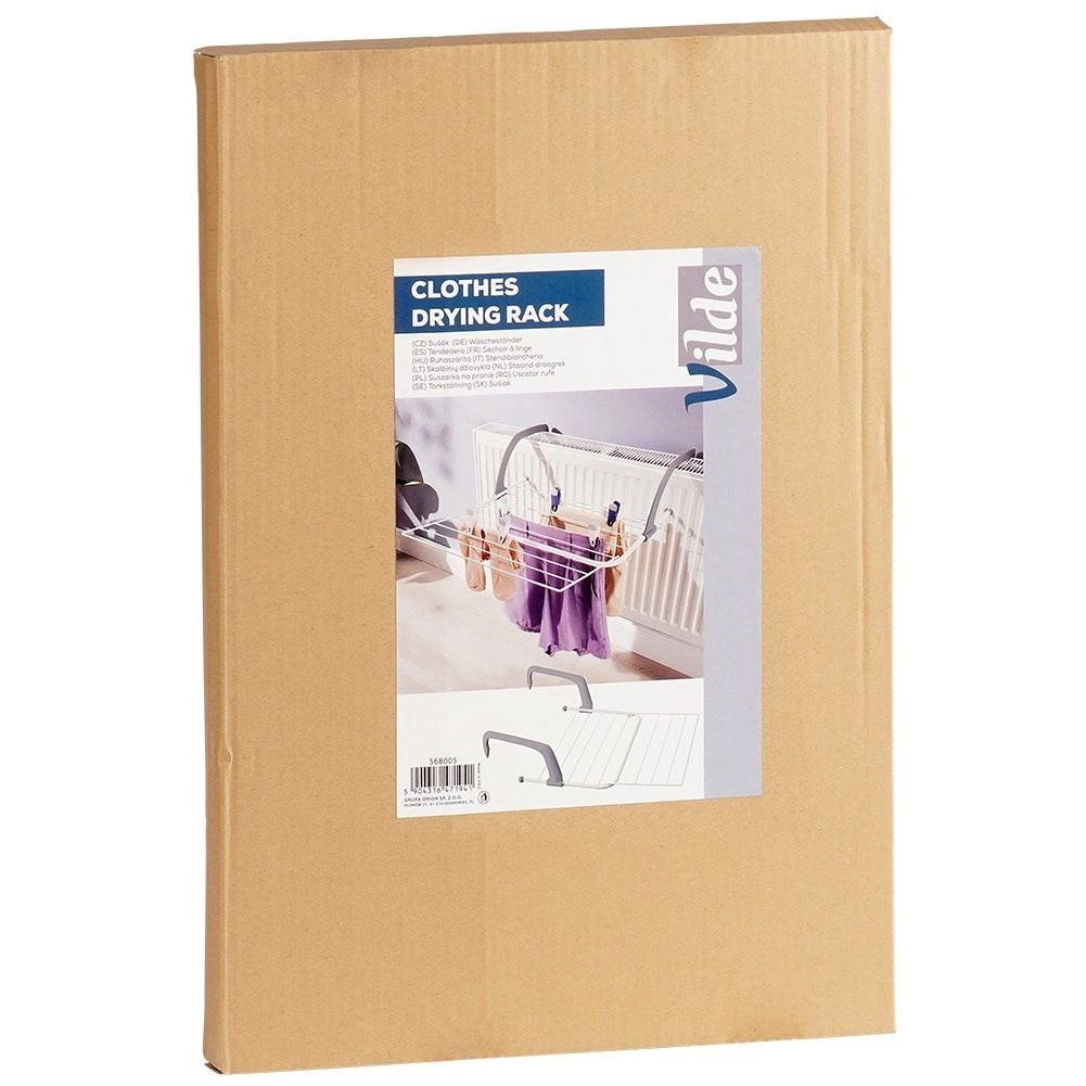 A praktikus, fehér színű, kihajtható radiátorszárító helytakarékos, gyors száradást biztosít a radiátor melegének köszönhetően, és szerszám nélküli, egyszerű felszerelést kínál. A állítható akasztóknak köszönhetően a legtöbb radiátorra és korlátra felakasztható, a kompakt kialakítás és a masszív fém kivitel pedig hosszú élettartamot garantál.