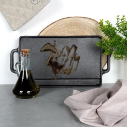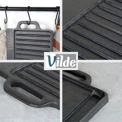 Robusztus, kétoldalas, minőségi öntöttvas lap, amely bírja az intenzív mindennapi használatot otthon és a szabadban is. Az öntöttvas stabil hőmérsékletet biztosít, ami ideális az erős pirításhoz, az egyenletes átsüléshez és a szép kérgesítéshez odaégés nélkül. Az integrált füleknek köszönhetően könnyedén átteheti a tűzhelyről az asztalra, stílusos tálaláshoz.