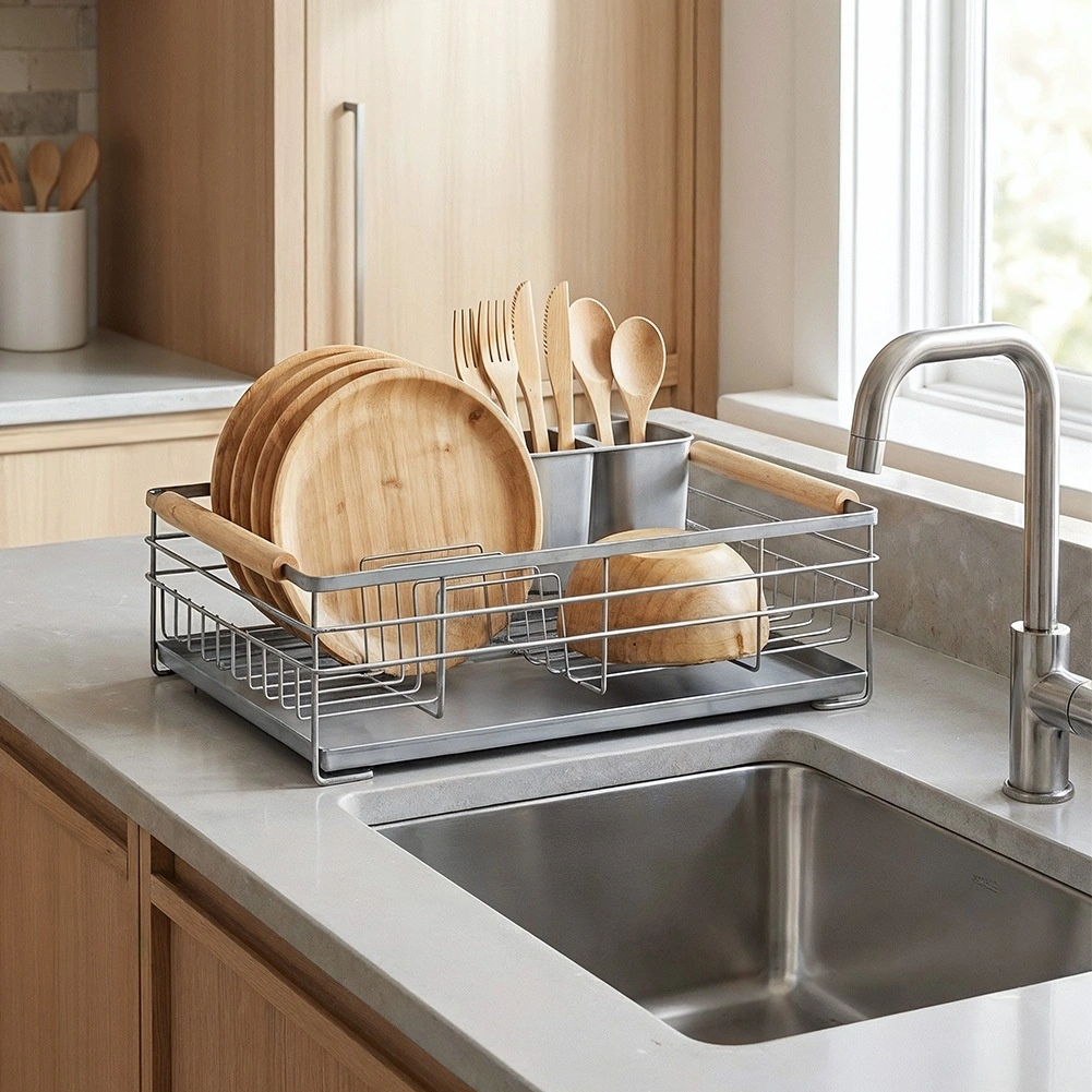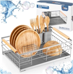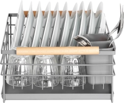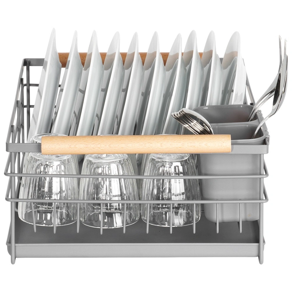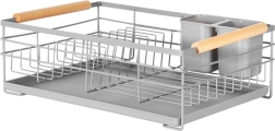 A szárító dedikált helyeket kínál 10 tányér számára, valamint teret a poharaknak és tálaknak. A fa oldalsó fogantyúk megkönnyítik a hordozást és stílusos megjelenést kölcsönöznek, amely jól illik különböző enteriőrökhöz. Az egyszerű karbantartás és a strapabíró anyagok megbízható társsá teszik a mindennapi mosogatásnál.