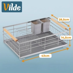 Az integrált tálca felfogja a száradó edények vizét, és a könnyű kiemelésnek köszönhetően gyorsan kiönthető és tisztítható. A konyha így rendezett és csöpögésmentes marad.